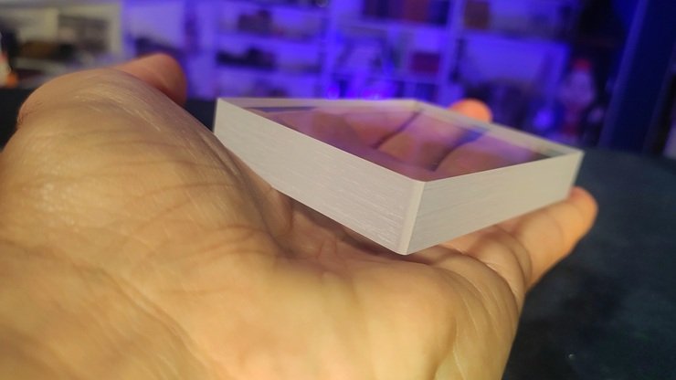 Luego tú pones la baraja en la mano del espectador… y de manera misteriosa ésta se solidifica transformándose en un bloque de acrílico transparente…
