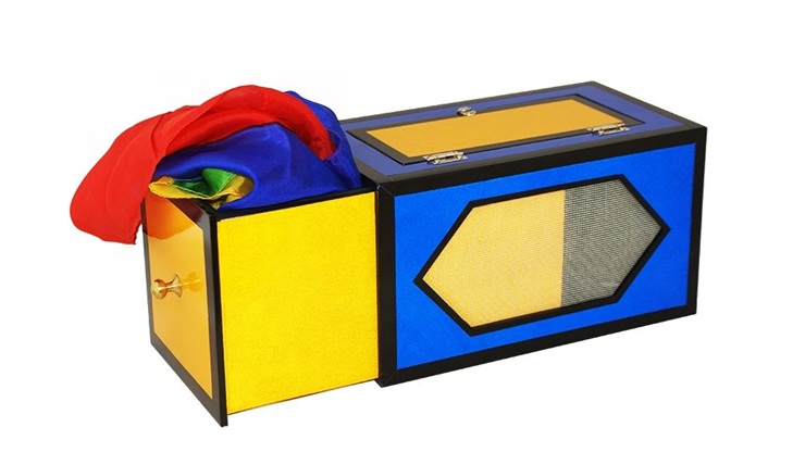 La caja mide 25,5 cm x 14 cm x 14 cm, un tamaño perfecto para transportar fácilmente y utilizar en distintos tipos de rutinas mágicas. No tiene ángulos visibles, lo que hace que la carga esté completamente segura y el efecto sea aún más limpio. Los artículos de producción no están incluidos, lo que le permite personalizar el truco según su estilo y necesidad.