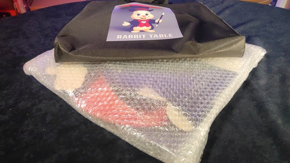 La mesa conejo de Tora Magic es portátil, práctica y luce genial. Su diseño llamativo la hace perfecta para cualquier tipo de actuación y a los niños les encanta. Tiene una superficie redonda que ofrece espacio para accesorios de magia y sirve como soporte para objetos como una caja de producción o un círculo cuadrado.