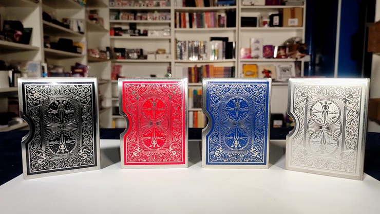 Fabricado en aluminio de alta calidad, está diseñado a la medida exacta para barajas Standard como Bicycle, Phoenix, Tally-Ho y otras marcas del mismo formato. Su ajuste preciso evita movimientos innecesarios y mantiene la baraja firme y protegida en todo momento.