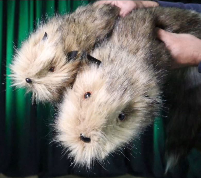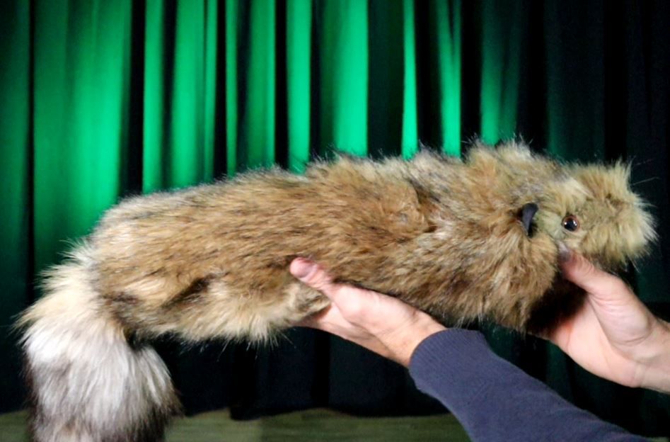 Materiales: Tela sintética con pelo ultra realista, cosido con hilo de nylon muy resistente. La cabeza soporta golpes escénicos, la cola no se descose y el muelle cónico tiene el grosor perfecto: resistente y muy manejable.