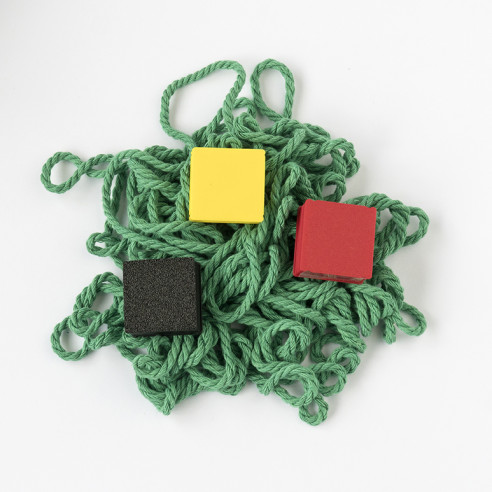 - Tres cajas de colores diferentes para combinarlas con el color de la lana.